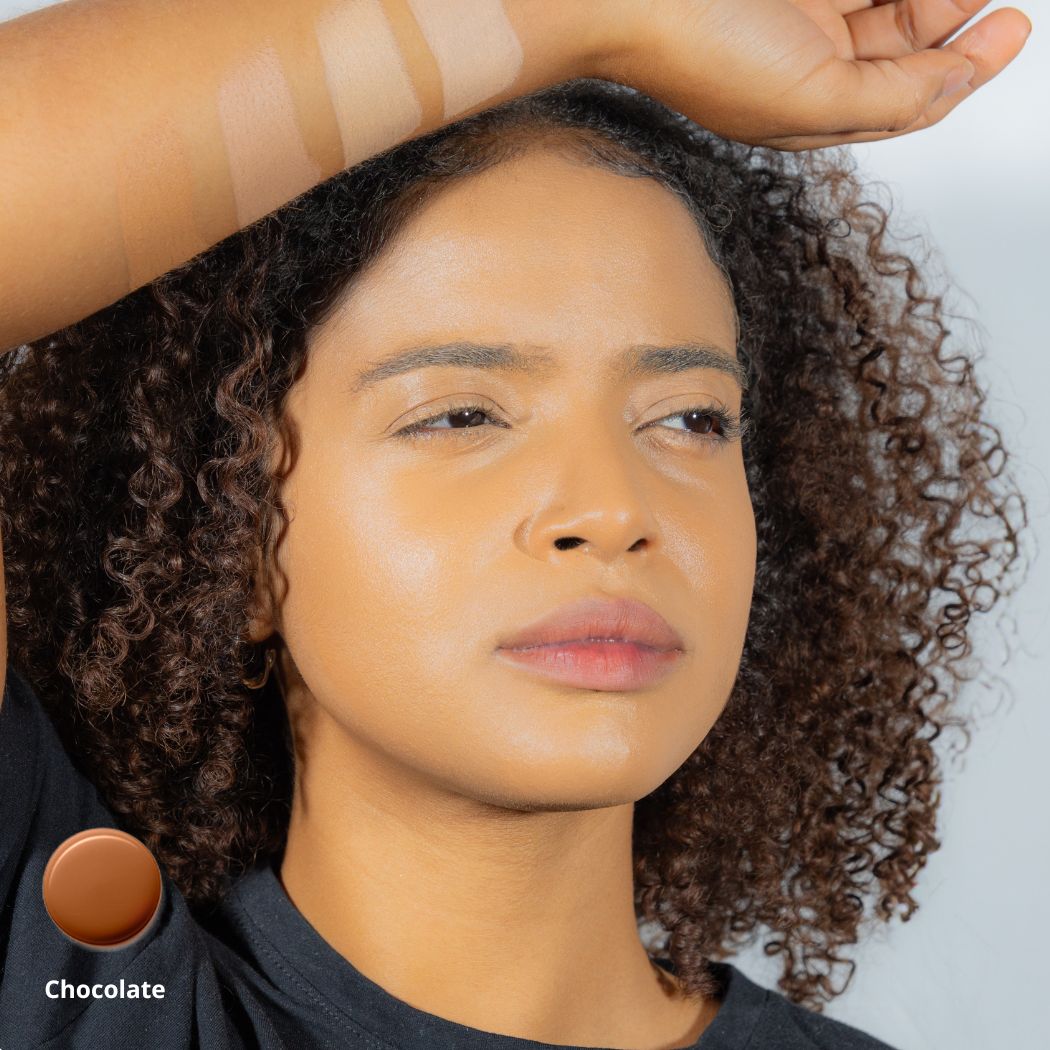 Com um toque seco e textura confortável, não craquela, não obstrui os poros e se adapta perfeitamente ao seu tom de pele. Disponível em Natural, Bege, Bronze e Chocolate, é ideal para uso diário, treinos e exposição ao sol